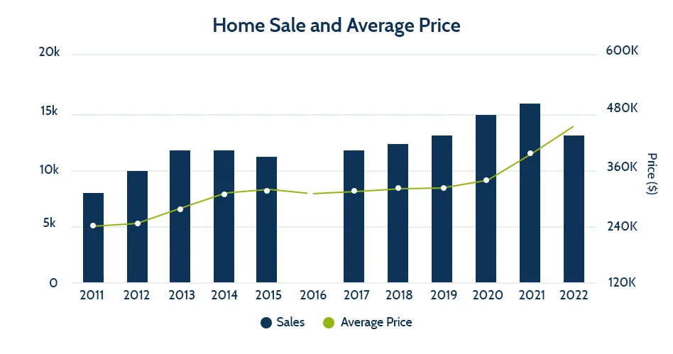 • Home sales and average prices have steadily increased overall from 2011 to 2022.